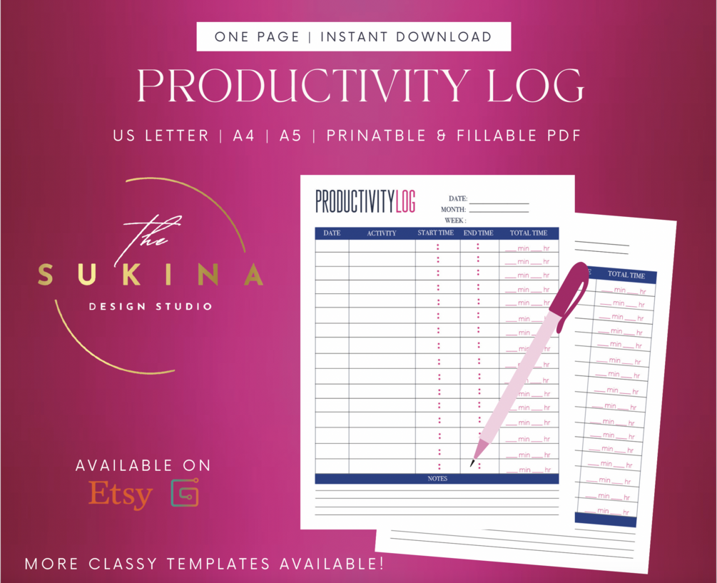 PRODUCTIVITY LOG Printable | Sel Development | Work Project| Project Management | Creative Director Template | A5| A4 Letter.